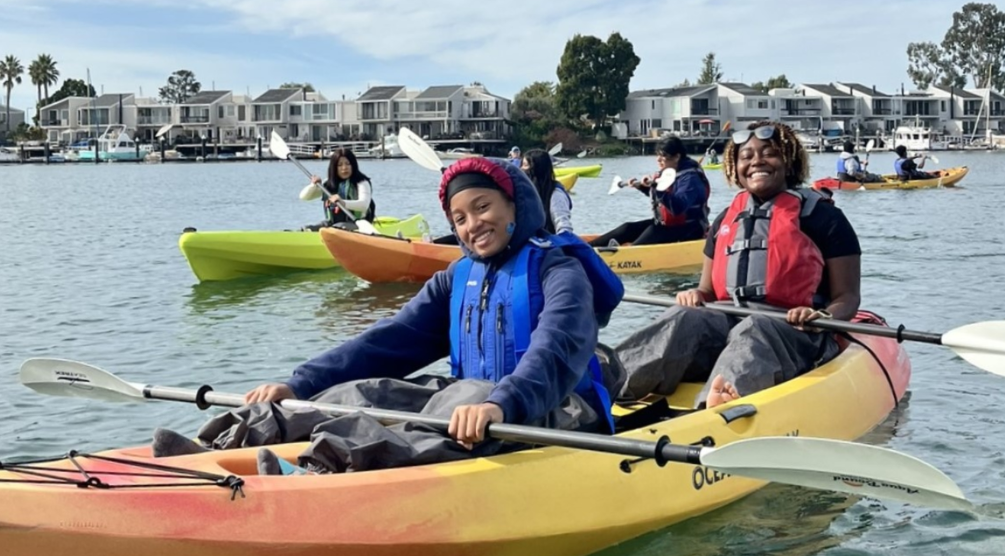 Explore the calm Alameda waterfront in our double stable sit-on-top kayaks. The island of Alameda is rich with history and from our location on Ballena Isle we have paddling access to see the USS Hornet (WWII aircraft carrier) Crab Cove Marine Sanctuary and Crown Memorial State Beach. Everywhere we paddle there are extensive views of the vast south bay and across the way the San Francisco skyline.